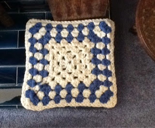 Usual time problem, knit or crochet against reading, just try to do both but not simultaneously! On the needles at present are granny squares, crocheting them to use up stash of double knitting; a pair of socks in self striping blue yarn from Lidl, I am still making the trim from Twilley's Lyscordet cotton for a plain lampshade it is such fine work that I need a good light and reading specs on.